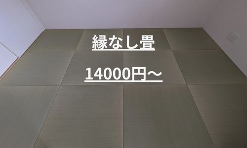 縁なし畳は縁のない最近流行りの畳です。基本的に半畳で制作し、市松状に敷いていきます。